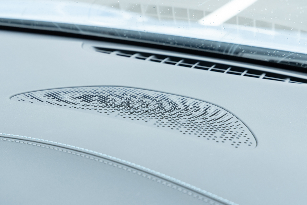 ダッシュボードの中央にはセンタースピーカーを配置。ユニット数を見ようとしたが、位置的に内部を見ることは叶わなかった。