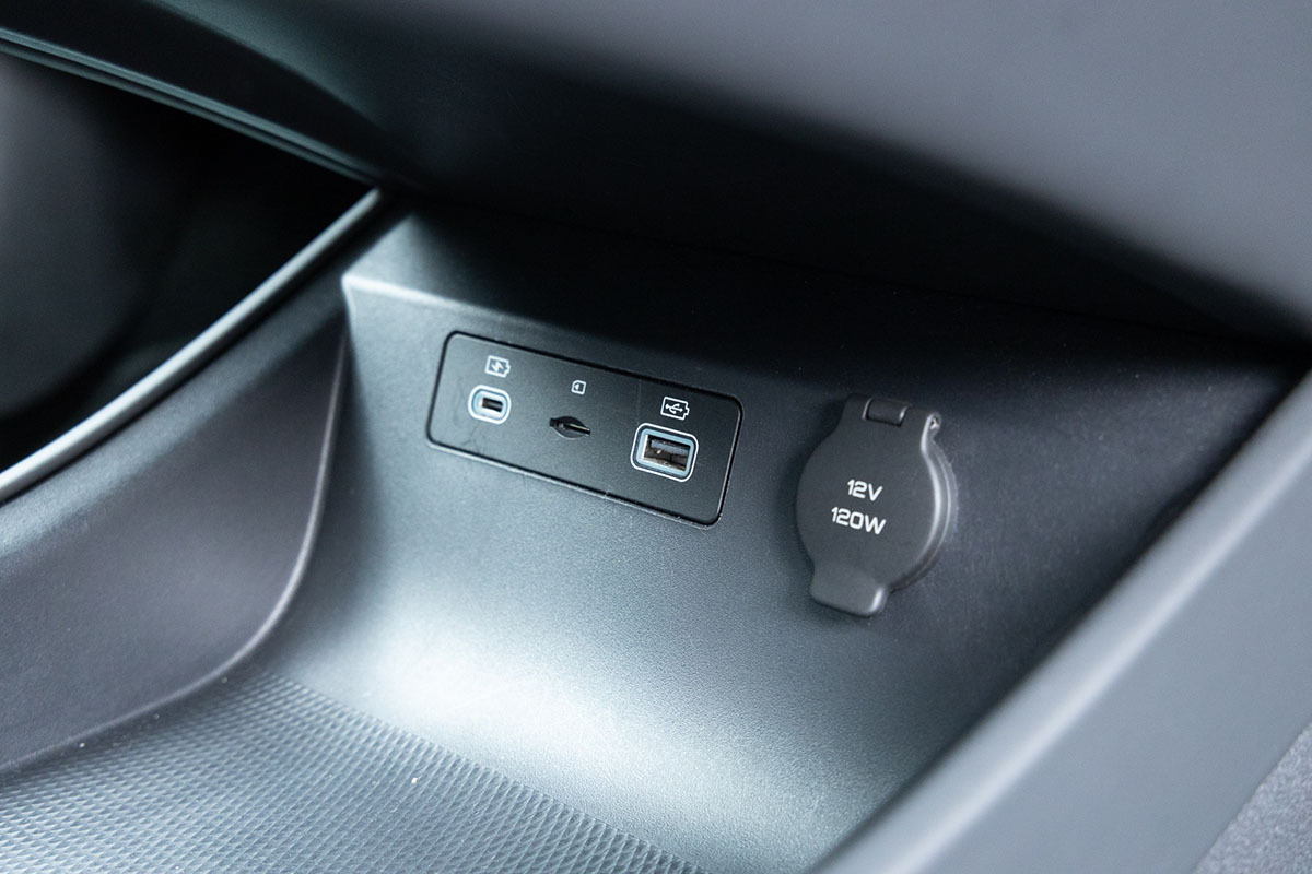 ソースはラジオのほか、Spotify、USB Type-A、SDカード、Bluetoothと多彩。USB Type-AとSDカードは、運転席と助手席の間にある二階建てセンターコンソールの下段にコネクターを設置されており、正直アクセスは悪い。