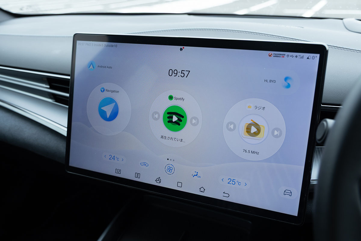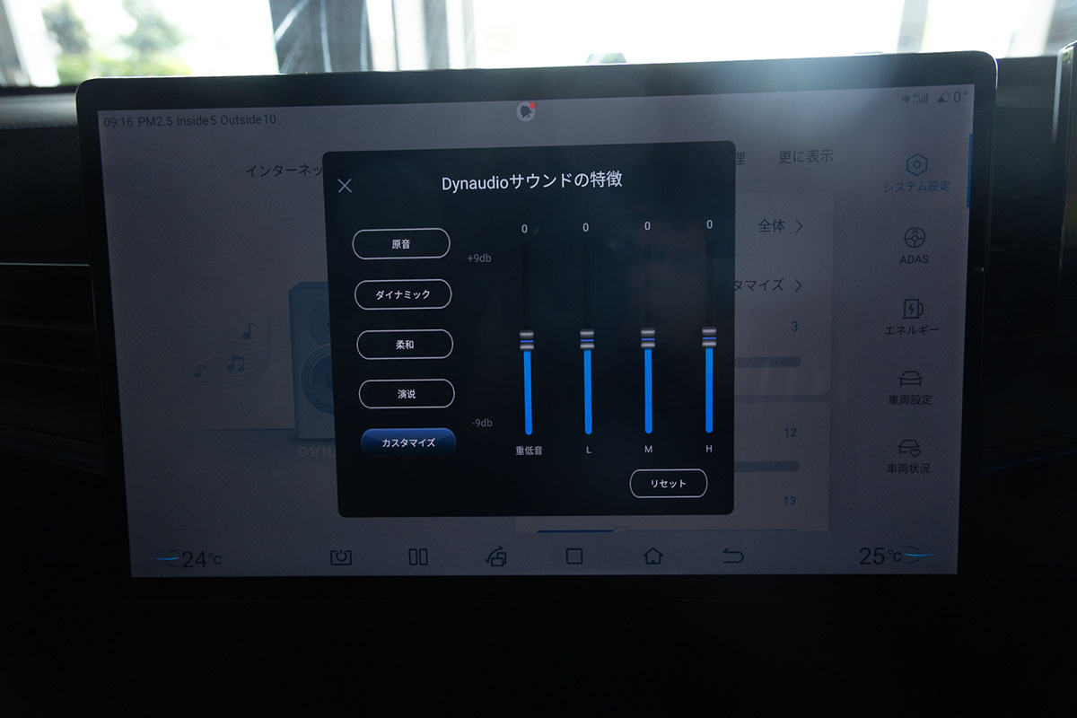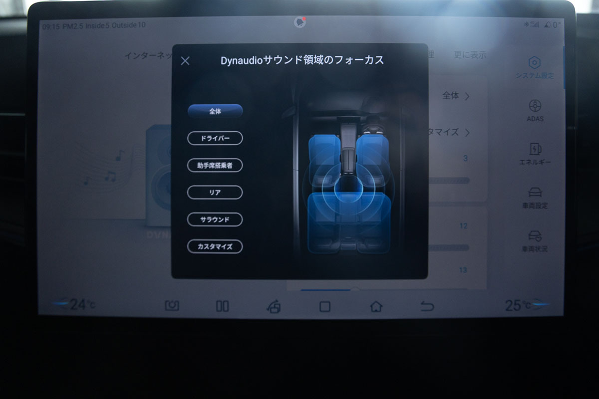 フラグシップである以上、車内を快適に過ごすことに主眼が設けらて然るべきだ。SEALはその期待に十分応えており、上質なしつらえに満足度はかなり高い。そしてカーオーディオに目を向けると、DYNAUDIOのロゴが見える。これもまた期待せずにはいられない。