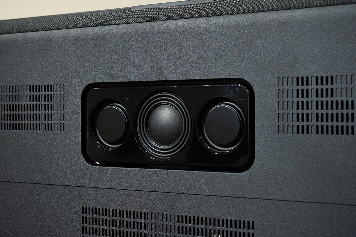 スピーカーは、上向き(イネーブルド)、横向き(ワイド)、前向き(ラインアレイ)、そしてウーファーから構成される「360立体音響サウンドシステム+」を搭載。特にウーファーは20Wから30Wへと出力を強化され、さらに計4つのパッシブラジエーターを対向配置のデュアル構成とすることで不要な振動を抑えるなど、低音再生能力を大幅に向上させている。