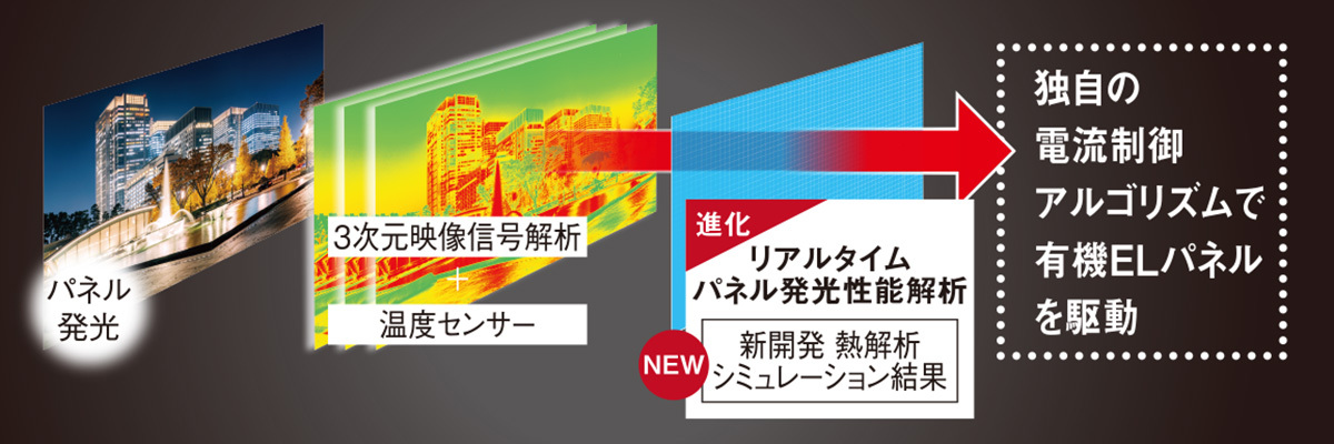 さらに、プライマリーRGBタンデムのパネル性能を最大限に引き出すために、ビエラが従来からこだわってきた放熱技術も新たなるステージへと進化。パネルが発した熱をさらに素早く空気中に放熱させる独自のパネル空冷技術「サーマルフロー」を投入している。