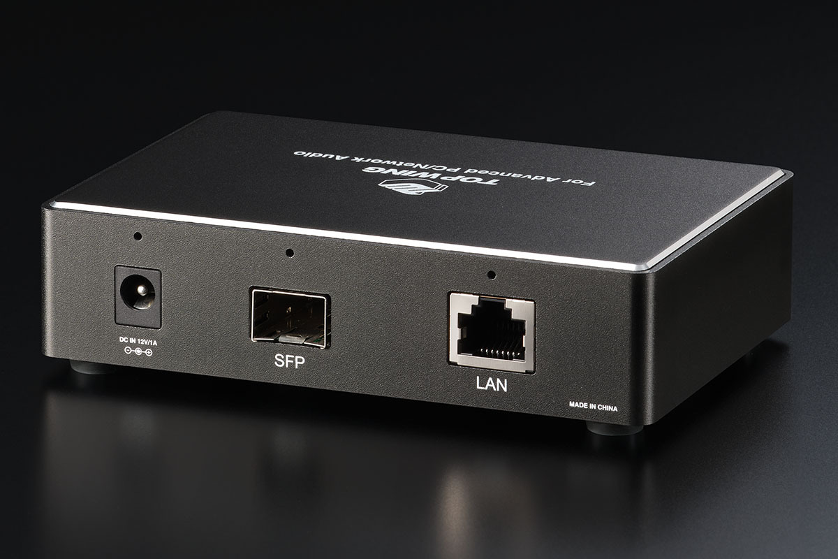 一方、小型の変換モジュール同士を光ファイバーでつなぐSFP(スモール・フォームファクター・プラガブル)を使えば対応機器同士がそのまま光でつながる。SFPポートを搭載するプレーヤーやトランスポート、スイッチングハブも着実に増えているので、ネットワークオーディオにおける光伝送の最適解になり得るが、ここでも肝心のSFPモジュールにオーディオグレードの製品が存在しないという問題があった。