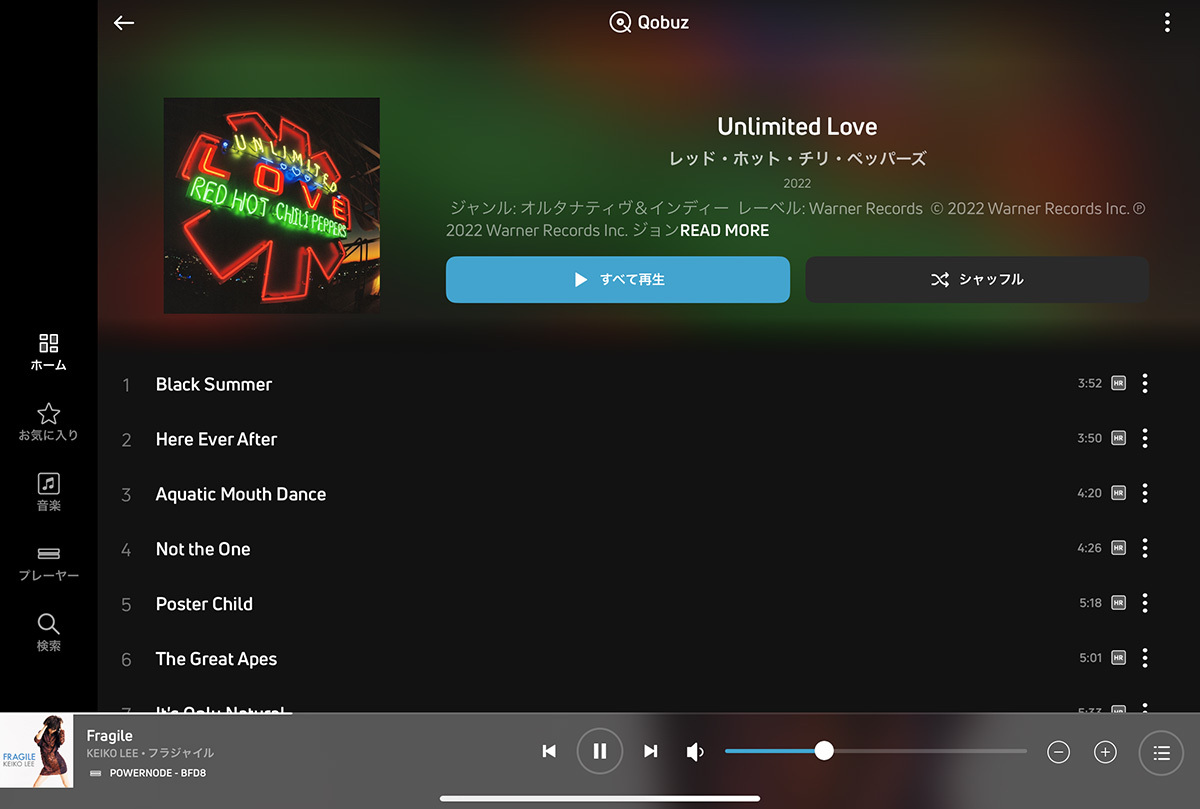 先ほどの組み合わせと同じ音源をQobuzにて試聴してみると、より実体感に富んだ音で、ディテールが表現が深く、より品位の高い再生音であることがすぐに分かる。