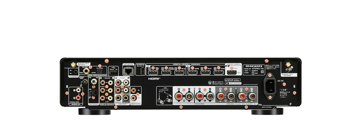 デノンとマランツは、AVアンプの開発にも意欲的に取り組んでいるが、その派生モデルとして登場したのが、デノンの「DRA-900H」とマランツの「STEREO 70s」だ。両機ともHDMI入力を6系統装備しており、HDMIケーブル経由でテレビの音声を手軽に高音質化できる。言わば、AVアンプからサラウンド機能を省き、2ch再生に特化したステレオアンプと言えるが、やはりネットワークプレーヤーを内蔵していることが特徴だろう。