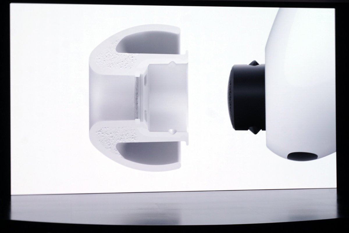 アップルは、前世代機に対してANC性能が2倍に向上した背景について、アルゴリズム(ソフトウェア)のブラッシュアップと新しい高性能マイク、そしてフォーム素材を先端に注入した新しいイヤーチップの組み合わせによるものと説明している。
