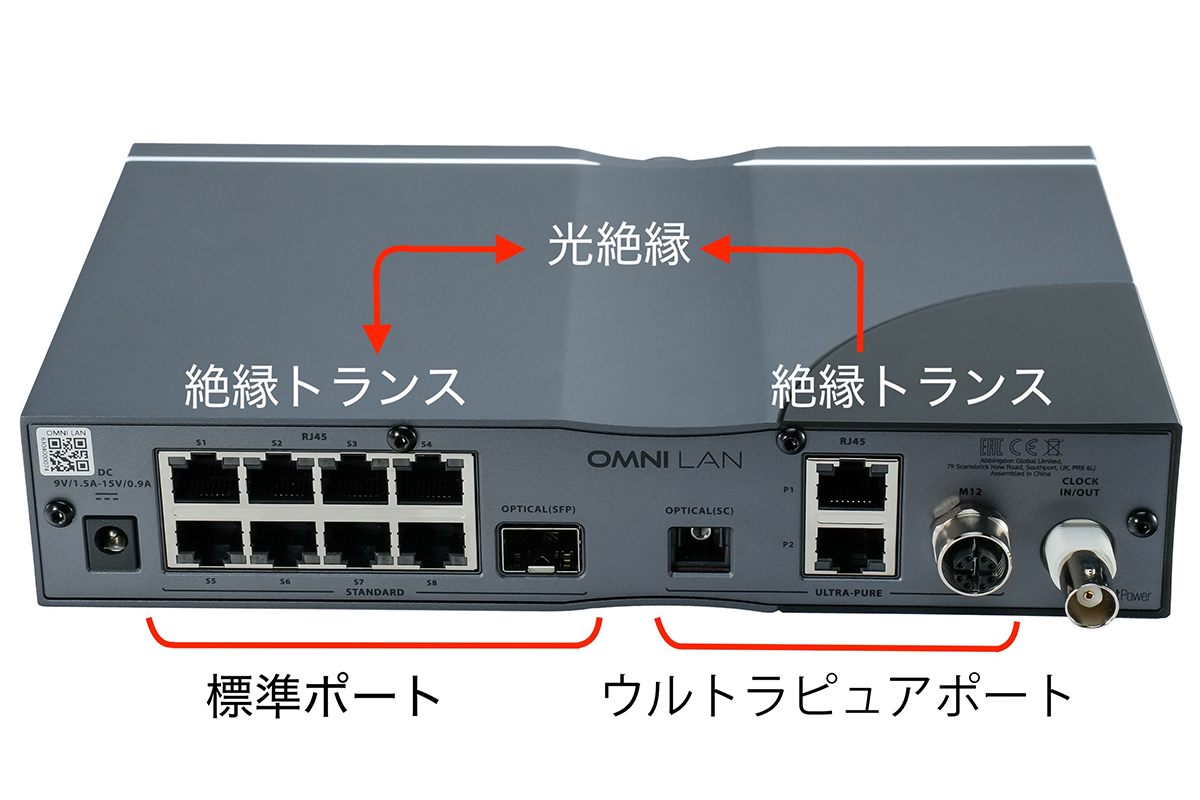 サーバーとネットワークプレーヤー間などのLAN伝送路上のネットワークスイッチの代わりにOMNI LANを使用すると、絶縁トランス→光変換→絶縁トランスという3段階のノイズ遮断プロセスと、内蔵フェムト・クロックによるリクロッキングを組み合わせたノイズフリーの伝送を実現することができるというのがメーカーの主張だ。