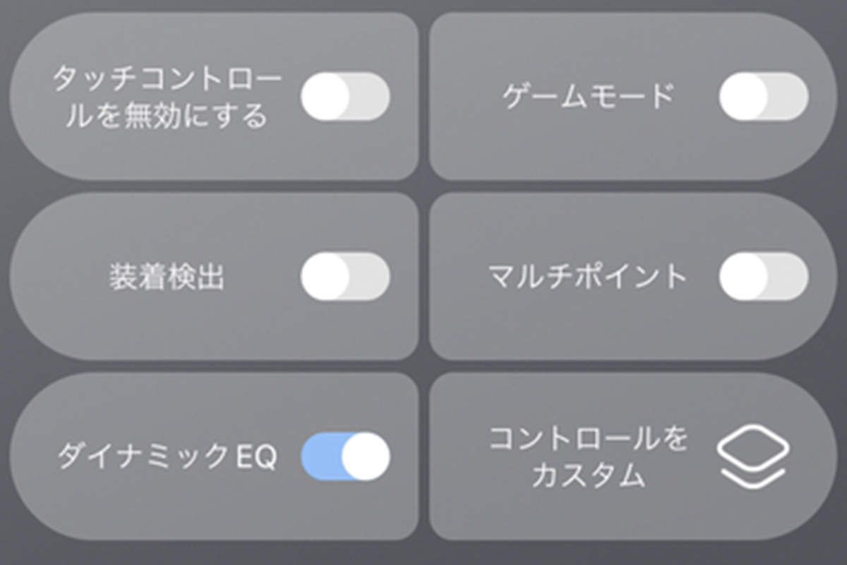 DynamicEQ ProとLDACは同時には有効にできないのだが、基本の選択としておすすめしたいのはDynamicEQ Pro。充実の低音補完を得られる上に、LDAC接続と違いiPhoneとの組み合わせでも機能し、電波状況の影響も受けず、電池持ち的にも優位だったりする。