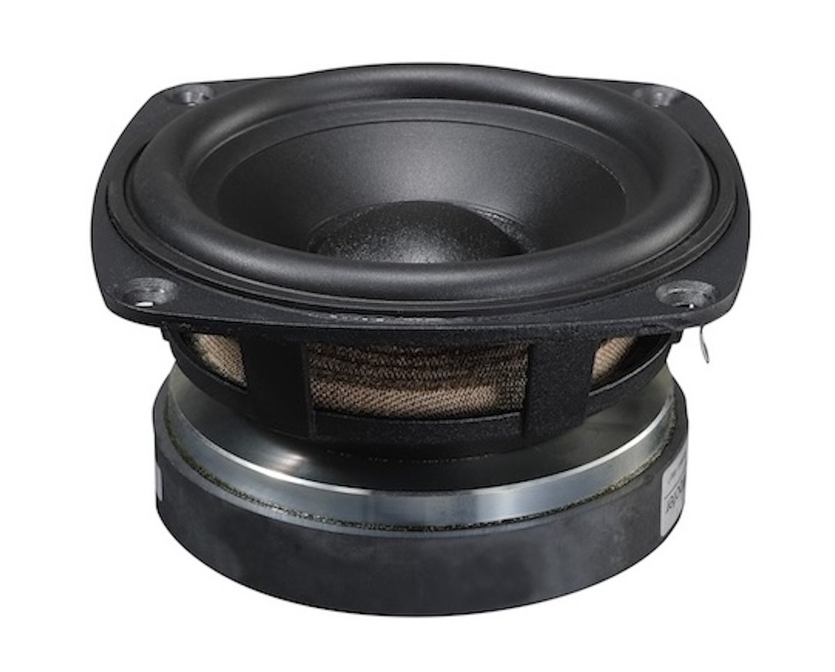 ウーファーはポリプロピレン振動板の10cm口径で、ゴム製エッジを採用。銅リボン・エッジワイズ巻きのボイスコイルにフェライト磁石、アルミダイキャストフレームを採用している。もともとベースとなるウーファーユニットがあったようだが、ME-50FS用に音圧や共振周波数、インピーダンスカーブのペア管理がされた選別品が採用される。