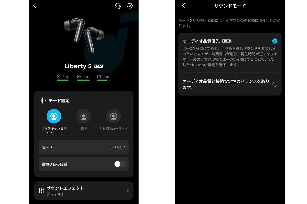 その評価に後押しされ、今年5月には第5世代モデル「Soundcore Liberty 5」が登場。「ウルトラノイズキャンセリング」はさらに効き目を増した新世代の “3.5” に、音質は9.2mmダイナミックドライバーと2本のダクトによるSoundcoreの完全ワイヤレスイヤホンでは初のバスレフ設計に進化。