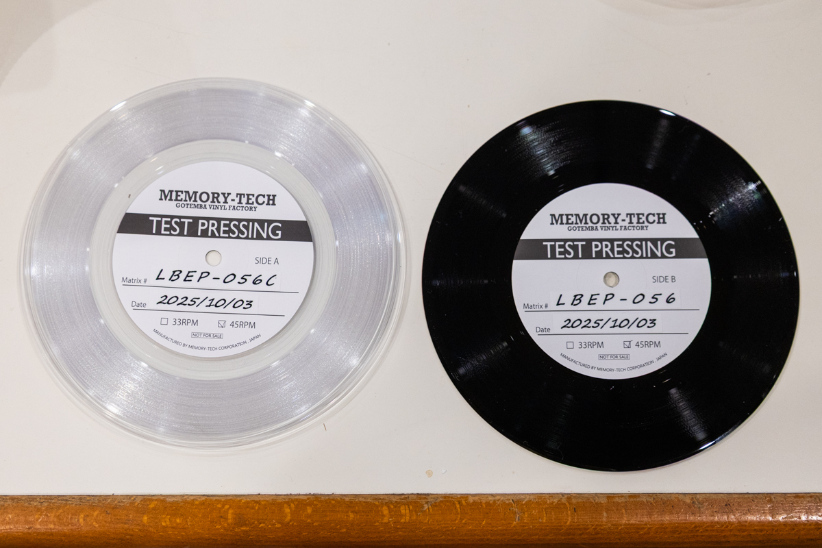 そこへ2025年8月末、メモリーテック社御殿場工場見学の際、井筒は工場内のクリア盤のサンプルの音に触れ感激。その場でサンプルプレスを依頼し、できあがったそれを東京・青山の「ミキサーズ・ラボ」の北村のカッティングルームで関係者一同で試聴。黒盤、スーパークリアの盤甲乙つけがたい音に嬉しい悲鳴となり、2枚セットでの商品化が決定した。