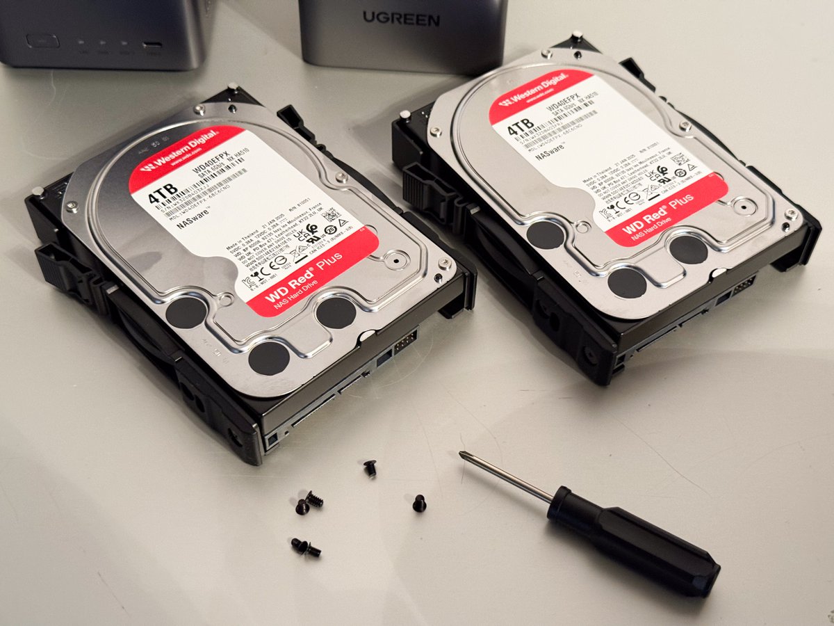 今回は2台のHDDを付属ドライバーで取り付けた。市販モデルの中にはHDD搭載済みの製品もあるが、容量や価格を自分で調整できる点はベアボーンならではのメリットだ。NASに装着するHDDは一般的なPC用よりも、24時間365日の稼働に耐えるサーバー向けの高耐久モデルが理想的。