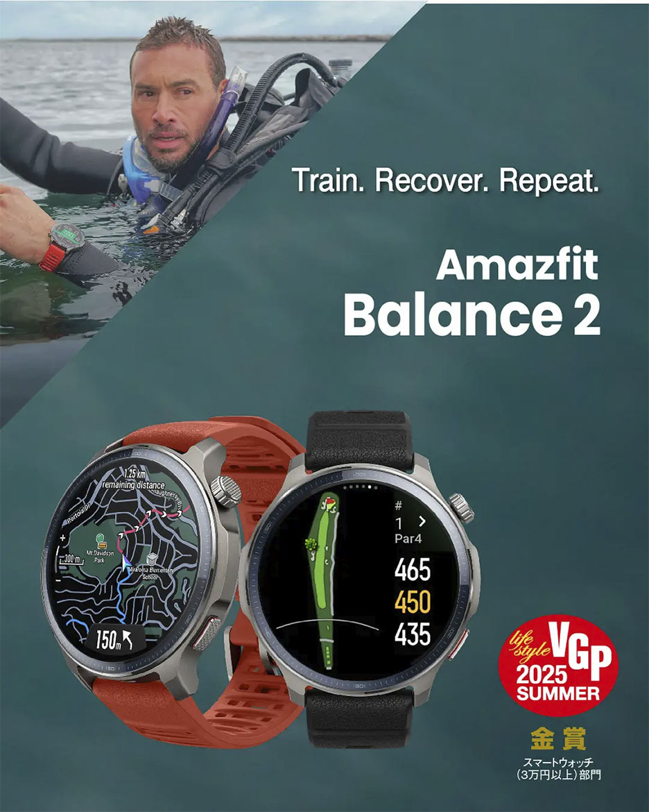 11月21日(金)より開催されるAmazonの大型セール「ブラックフライデー」。国内でも存在感を高めつつあるウェアラブルブランド・Amazfitから、多数のスマートウォッチがお買い得となっている。さまざまな便利機能を搭載するうえ、耐久性にも優れた製品群は、普段使いからアウトドアまで幅広いユーザー層から支持を受けている。過去のVGPアワードでも、審査員から高く評価され数々の賞を獲得している。今回は、Amazfitの「ブラックフライデー」セール対象製品のなかでも、特に注目すべき4モデルを厳選して紹介しよう。