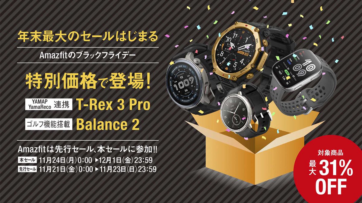 ビジネスからアウトドアまで、Amazfitの“超有能”スマートウォッチがAmazonブラックフライデーでお得!