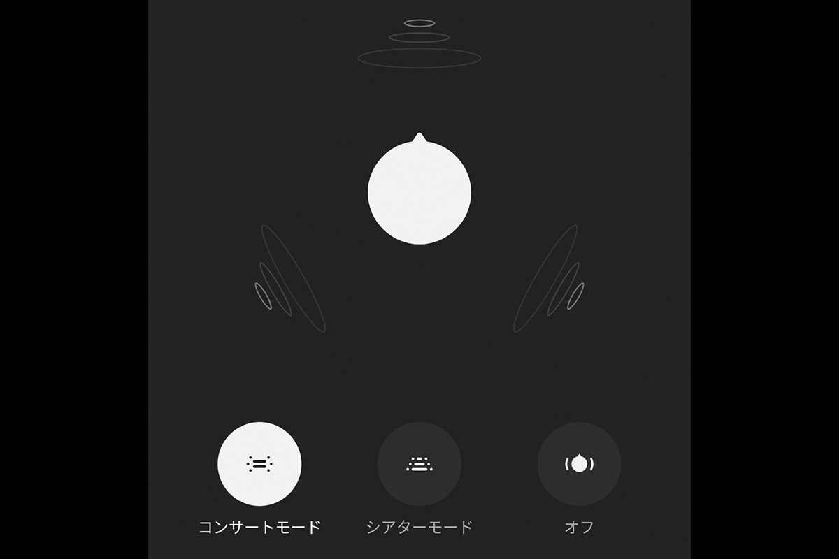 アプリでEQ調整が可能だが、本機はハウジング部に備えたスライダーで直感的にトーンの調整が可能と、曲や気分に合わせ易いのも特徴。製品の性格にあった好機能に感じる。ヘッドトラッキング機能は備えていないが、コンサートモードとシネマモードの2種類のプリセットを持つ空間オーディオも利用可能だ。