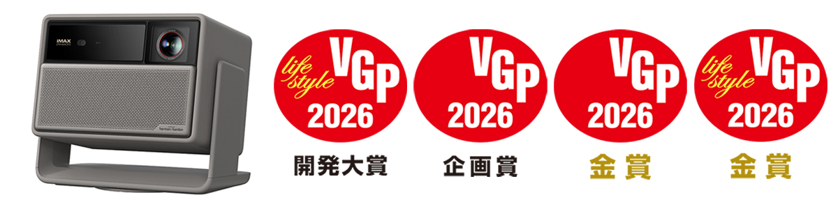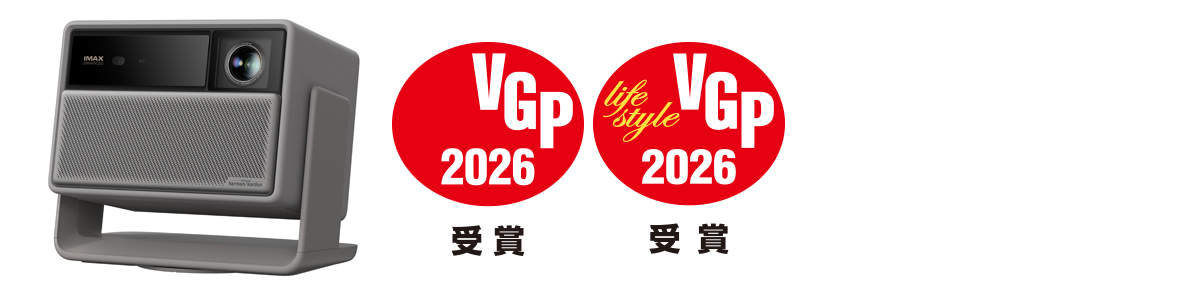 HORIZON 20 Max(450,900円/税込)。オーディオビジュアルの総合アワード「VGP2026」においてもその卓越した画質技術とライフスタイルへの提案性が高く評価され、映像音響部会とライフスタイル分科会の部門金賞を獲得。加えて、独自の光学設計による高輝度化に対して、ライフスタイル分科会 開発大賞に輝いた