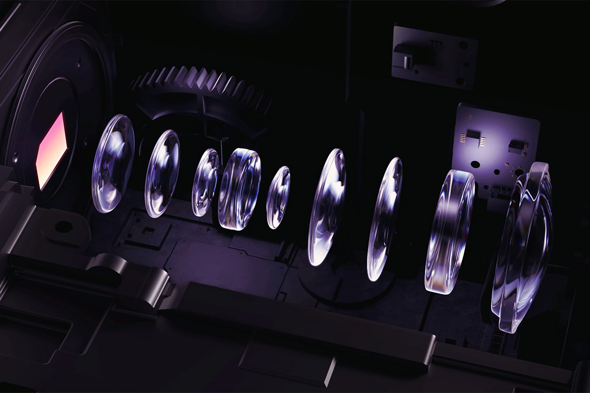 X-Master レッドリングレンズの構造のイメージ図。ガラスを含む9枚のレンズで構成されている
