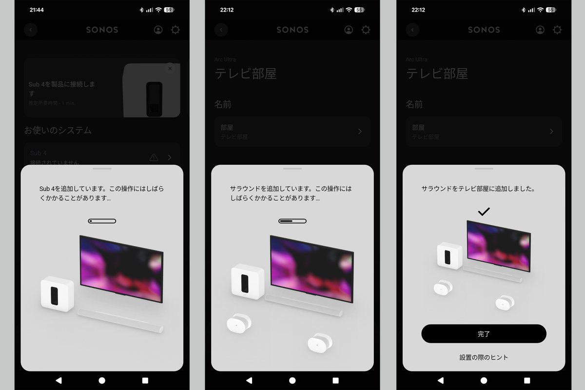 その拡張性を支えているのが、部屋の構造に応じて音場を最適化する自動音場補正機能「Trueplay」であり、Sonosのオーディオ機器に搭載されているソフトウェアシステムだ。この2つの "ぶれない軸" があるからこそ、サブウーファーやリアスピーカーを後付けしても、Sonos Arc Ultraのカラーが保たれるのだろう。