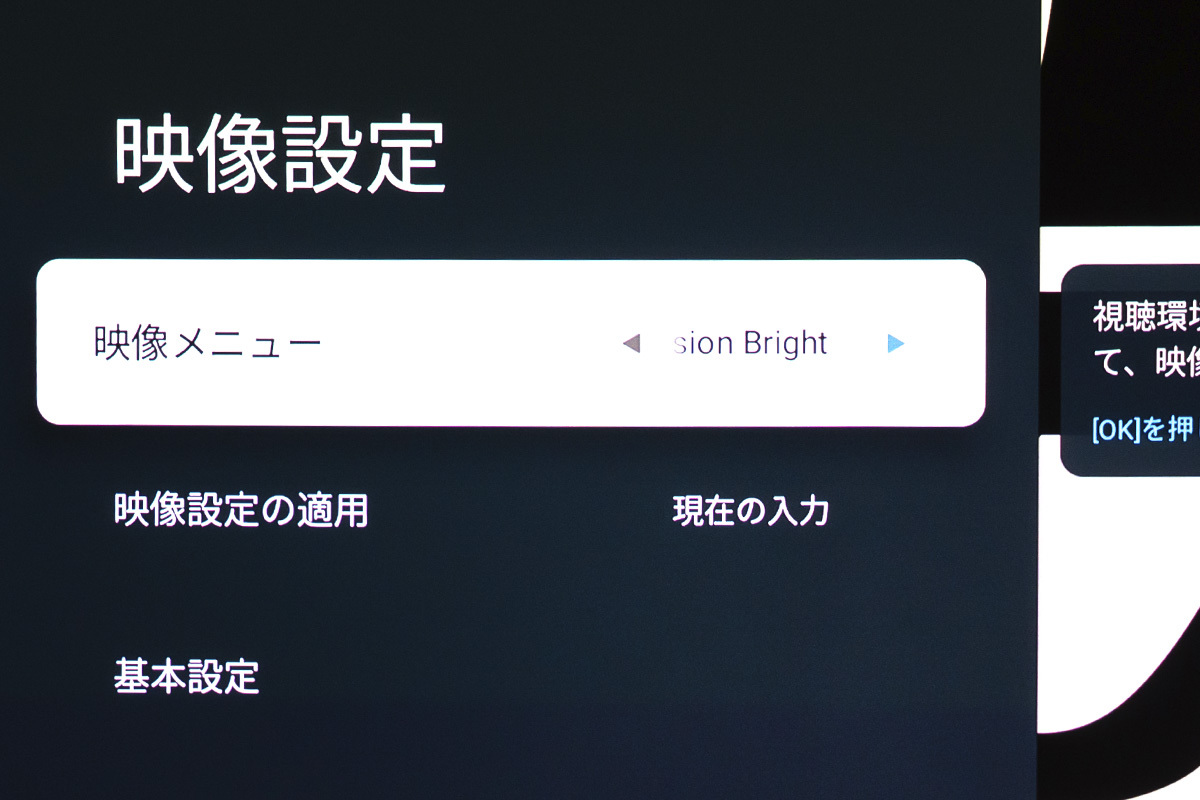 映画作品の視聴で気が付くのは、24p収録作品でジャダーが目立つこと。本機に限らず、光源がパワフルで映像が明るいと、ブレが気になりやすく目の疲労にも繋がる。かといってフレーム補完機能を使うと映画の雰囲気が台無しになるのがジレンマだ。