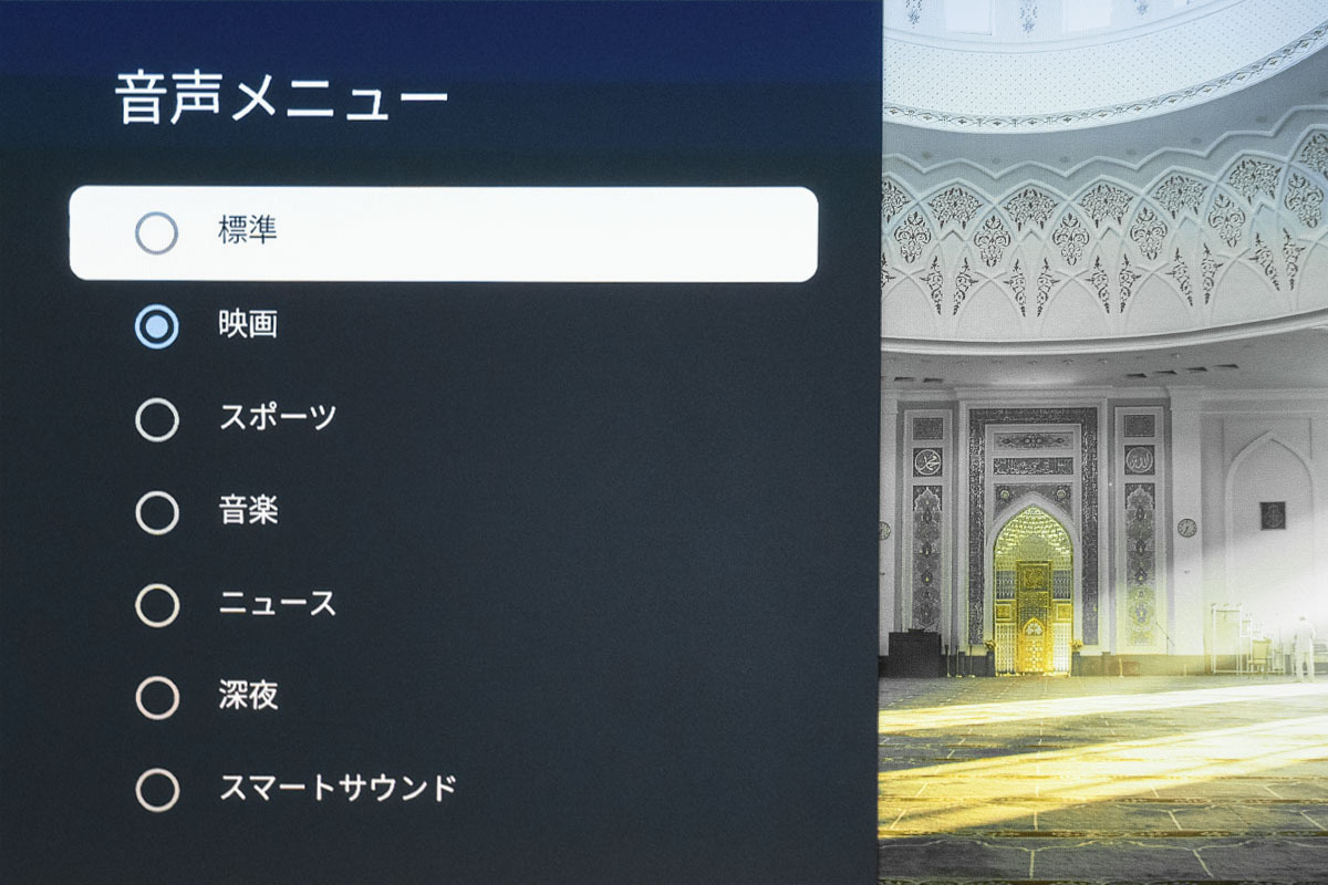 映画作品の視聴で気が付くのは、24p収録作品でジャダーが目立つこと。本機に限らず、光源がパワフルで映像が明るいと、ブレが気になりやすく目の疲労にも繋がる。かといってフレーム補完機能を使うと映画の雰囲気が台無しになるのがジレンマだ。