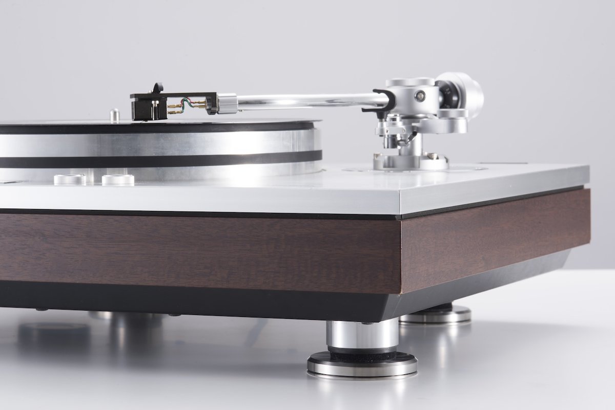 試聴機材はアナログプレーヤーと管球式アンプを用意した。まずアナログプレーヤーの脚をSWI–10に乗せる。ごく一般的なセッティングである。
