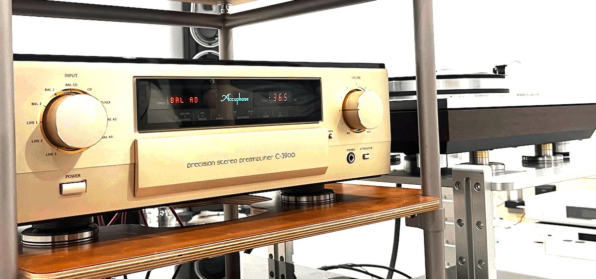 その状態でさらにプリアンプ「C-3900」にもSWI-10を敷いてみた。こちらはラックとの関係で直接乗せられないので、機材の脚を乗せる一般的な形である。