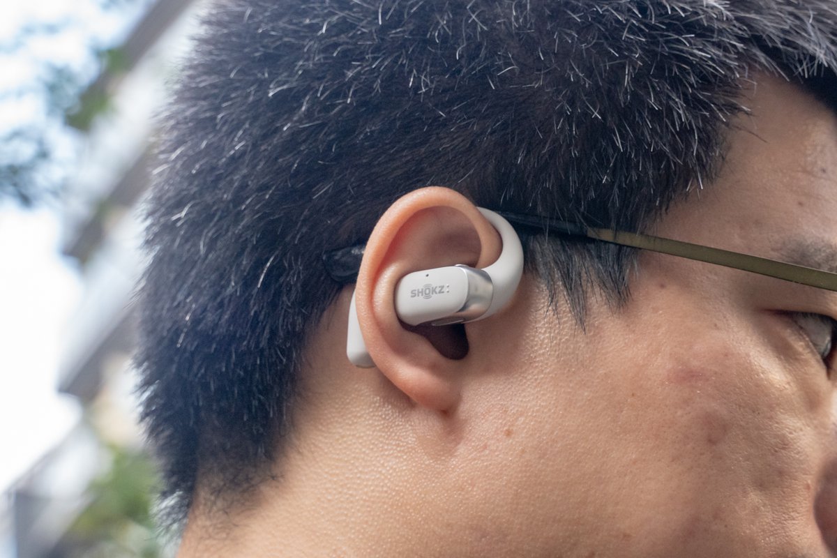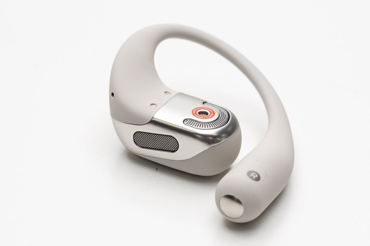 Shokzが「ゴールデンスパイラル(黄金比)」から着想を得たというイヤーフックは、柔軟なニッケルチタン合金とウルトラソフトシリコンで構成されており、耳の形状にしなやかにフィットする。9.4gという軽量設計も相まって着け心地は軽快だ。