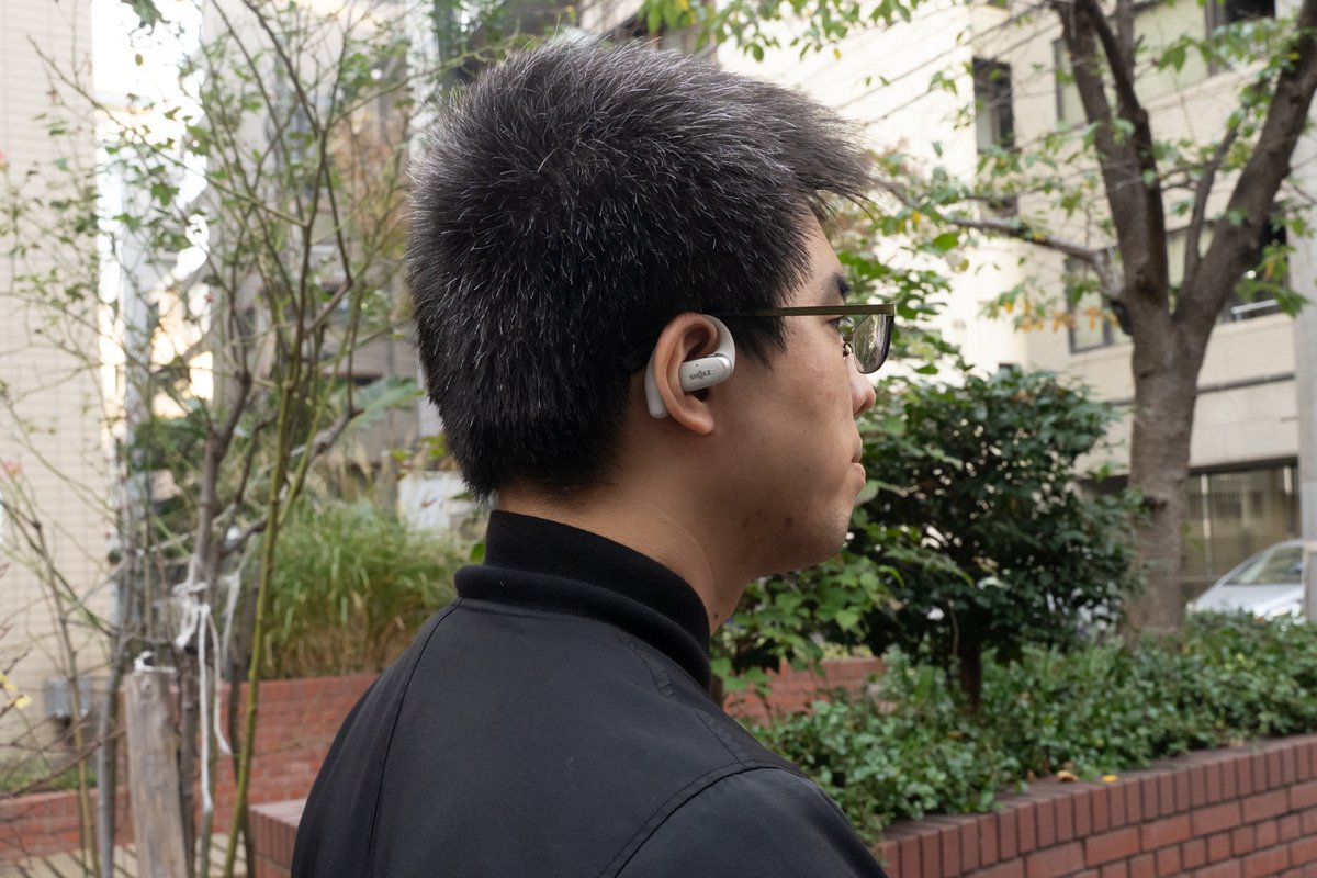 実際にOpenFit 2+を装着して屋外へ連れ出してみると、その「絶対的な安定感」に驚かされる。