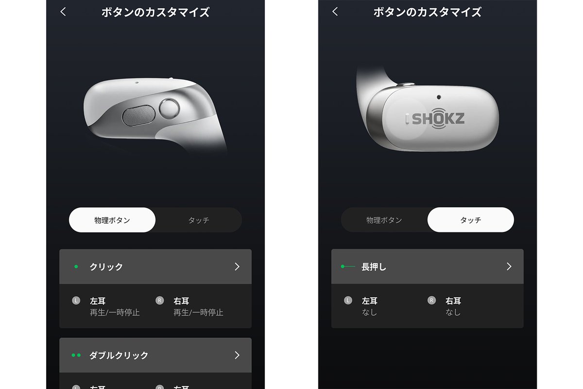 実際にOpenFit 2+を装着して操作してみると、その利便性はすぐに理解できる。タッチセンサーのみの機種では、汗ばんだ指での操作や、髪の毛が触れた際の誤反応がストレスになることがある。しかし本機では、再生・停止やスキップといったメインの操作を、クリック感のある物理ボタンに割り当てることが可能だ。