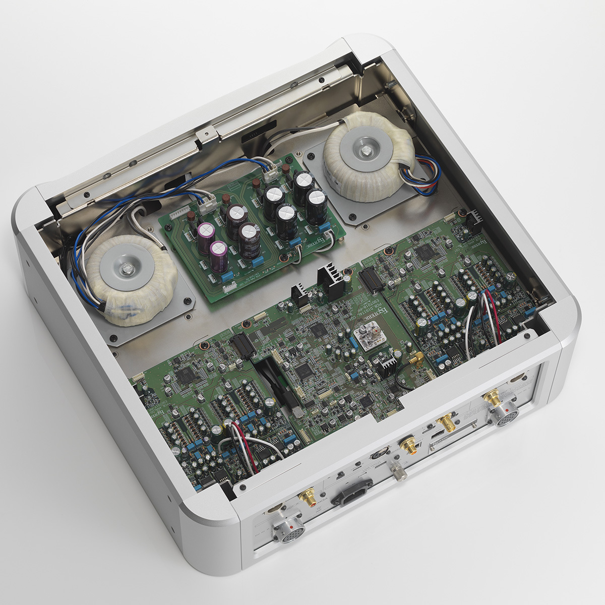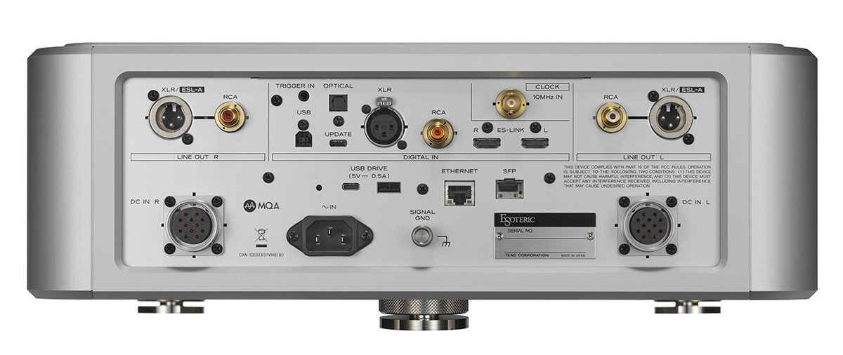 デジタル制御基板には、同軸/光、XLRバランス、HDMIによるES-LINK5、10MHzクロック入力を装備。ES-LINK5を使用すれば、SACDトランスポート「Grandioso P1X」と接続した高品位なSACD再生が可能となる。他の同社トランスポートとも、1本のXLRデジタルケーブルで接続できる。