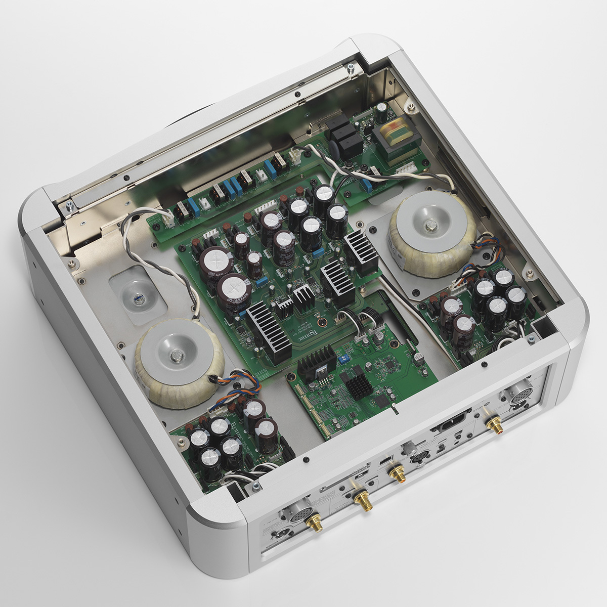アナログフィルター部には、独自のディスクリート構成のIDM-01増幅素子も使用されている。もちろん、同社の電流伝送であるES-LINK Analogに対応することは当然であり、本シリーズのプリアンプとパワーアンプで統一し、完全電流伝送が完結する。