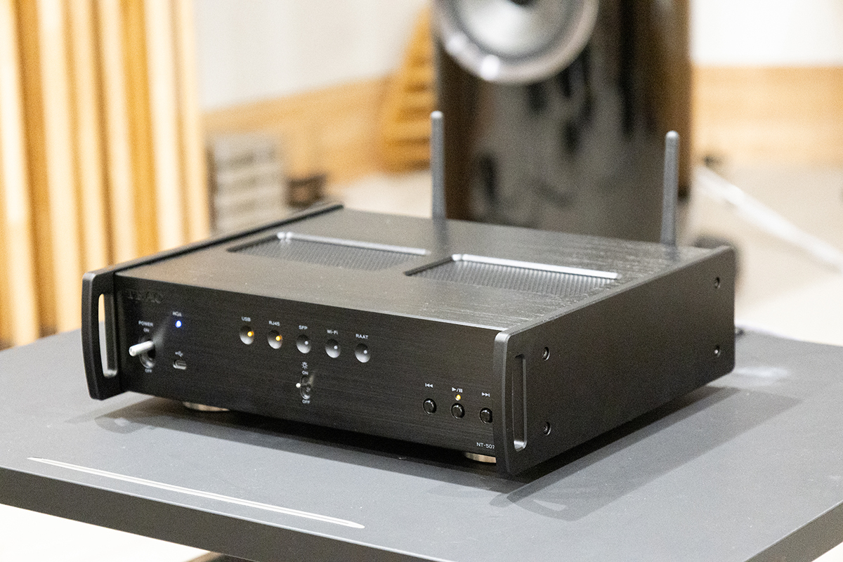 ここでNT-507TのフロントパネルにあるLED消灯スイッチを試した。消灯するとフロントパネルのLEDだけでなく、スピーカーまで消えてしまったではないか! いや、スピーカーの存在感が消え音だけが浮かびあがる、現代ハイエンドオーディオの魔法が、NT-507Tには備わっている。これは見えるオーディオだ。