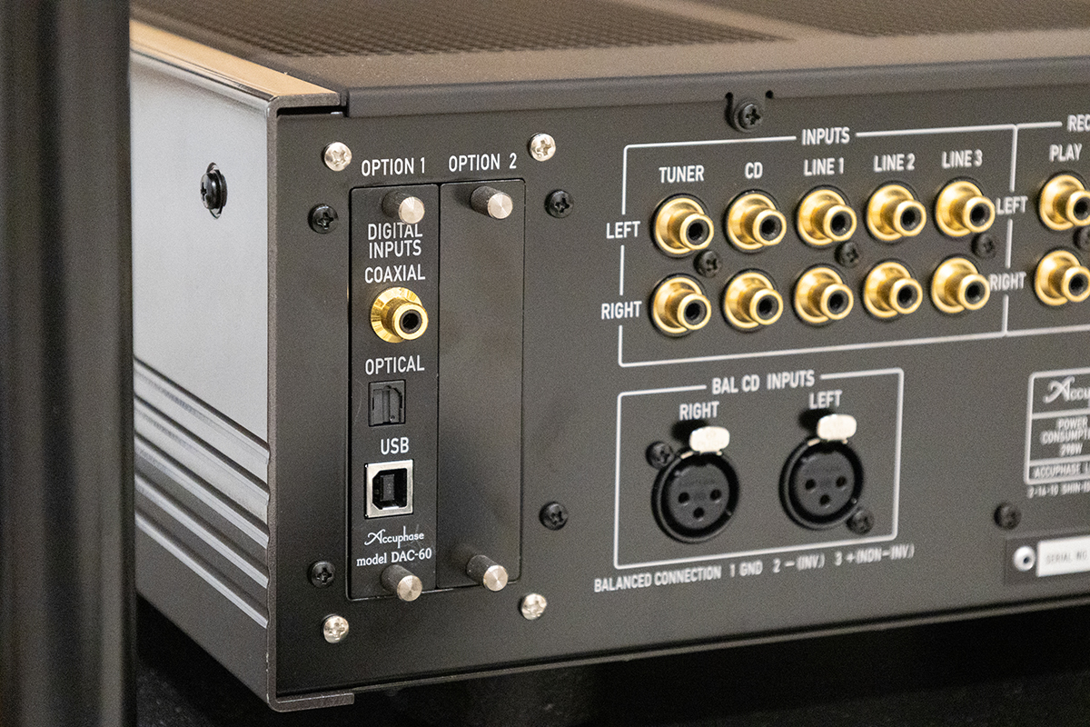 スピーカーにBowers&Wilkins「802 D4」を、プリメインアンプにアキュフェーズ「E-3000」を用意。プリメインアンプにはオプションスロットが用意されているので、DAC-60というDAコンバーターボードを挿入し、NT-507TとUSBケーブルで接続した。