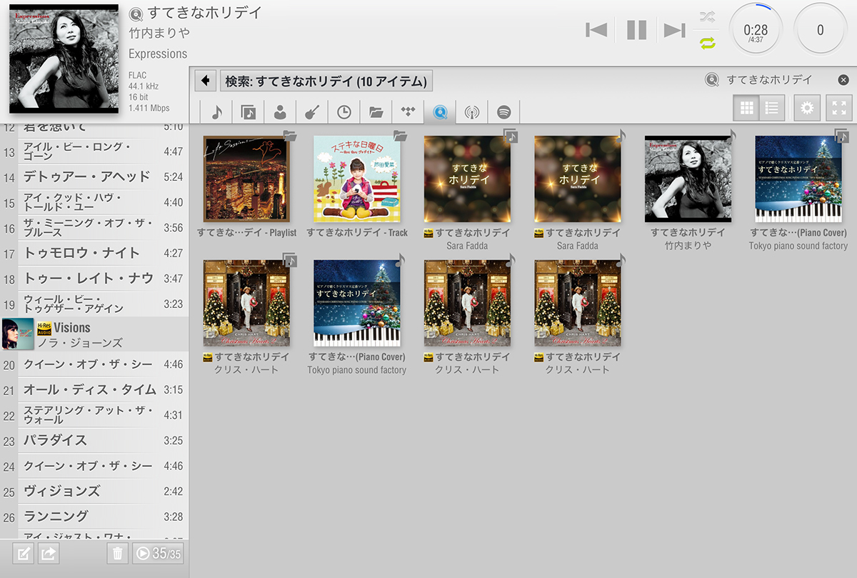 プロデューサーでありパートナーでもある山下達郎が集めた一流のミュージシャンとポップ・オーケストラが奏でるサウンドは、音楽内容はもちろんのことサウンドチェックにも好適だ。折角用意したサーバーからではなくQubuzから選んだのは、ダウンロードサイトで販売されている「すてきなホリデイ」はAAC-LC 320kbpsであるのに対し、Qubuzは44.1kHz/16bitのFLACで配信しているためだ。