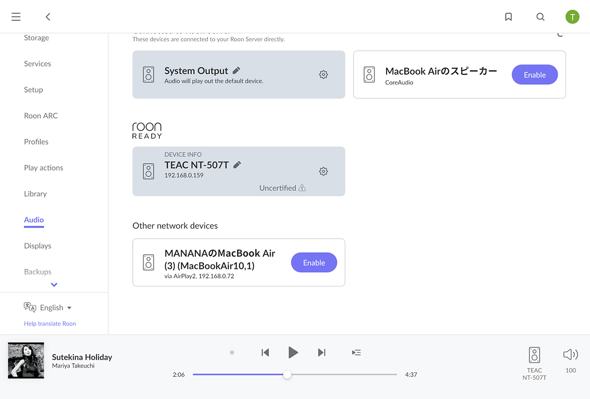 SFP接続のままNT-507TのRoon Only(RAAT)モードを試した。Roonについては別記事を参照して頂きたいが、簡単に言えば「選曲などを他の機械に委ねる(負荷分散)することと、独自の信号伝達(プロトコル)により音質が向上する」と捉えて頂きたい。