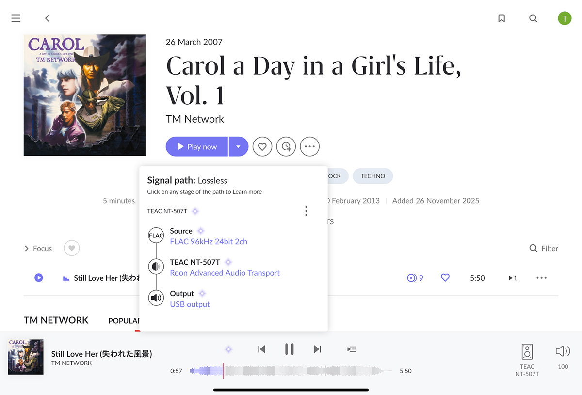NT-507Tがホリデーシーズンの販売であることにちなみ、試聴曲はクリスマスソングで始めることにした。クリスマスにちなんだ名曲の中から、Qubuz経由で2000年のCM放送で使われて以来、25年にわたり定番ソングとして親しまれている竹内まりやの「すてきなホリデイ」をチョイスした。