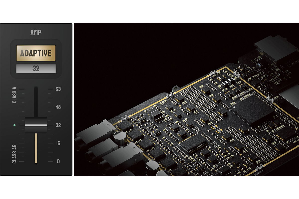 加えて、興味深い機能が新開発の「アダプティブ増幅技術」だ。こちら、入力されてくるオーディオ信号を瞬時に解析して、アンプへの電力供給を瞬時に最適化。常に必要十分な増幅と電力を供給しつつClass Aアンプ品質を維持することで、接続された機器に最適なサウンドを実現。同時に、バッテリー持続時間の延長にも貢献している様子が窺える。