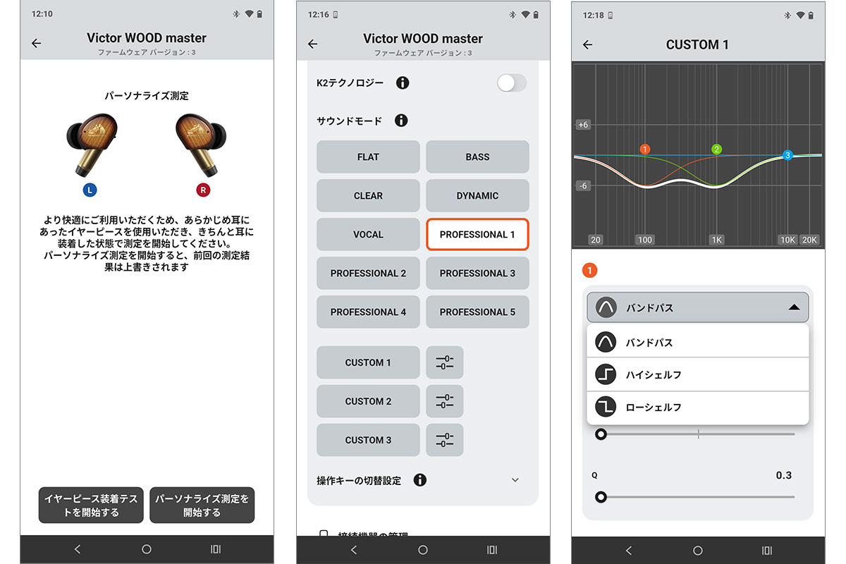 まずサウンドモード機能の一部として、ビクタースタジオのエンジニア5名による「PROFESSIONAL」サウンドモードの1から5が用意されている。どれもプロフェッショナルの仕事としての普遍的な整いを土台としつつ、そこにそれぞれの感性や個性を反映させたものとなっており、様々な楽曲にフィットしてくれそうだ。