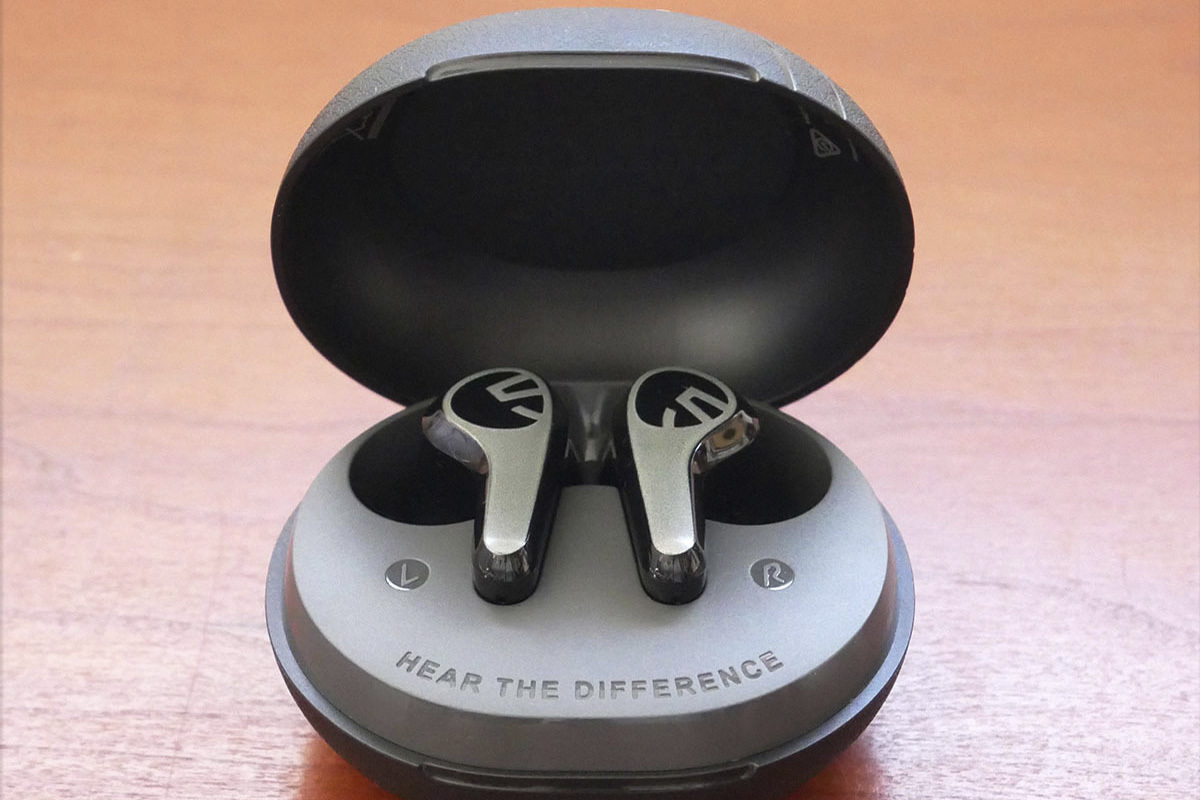 大きくあしらわれたロゴの「S」がアクセントになっている。イヤホン本体も外側から見える部分は銀色の印刷が施され、デザインと質感は価格帯を優に超える雰囲気。限られるであろうコストの中で、上手く仕上げた印象で、地味ながら同社のこだわりやノウハウを感じる。
