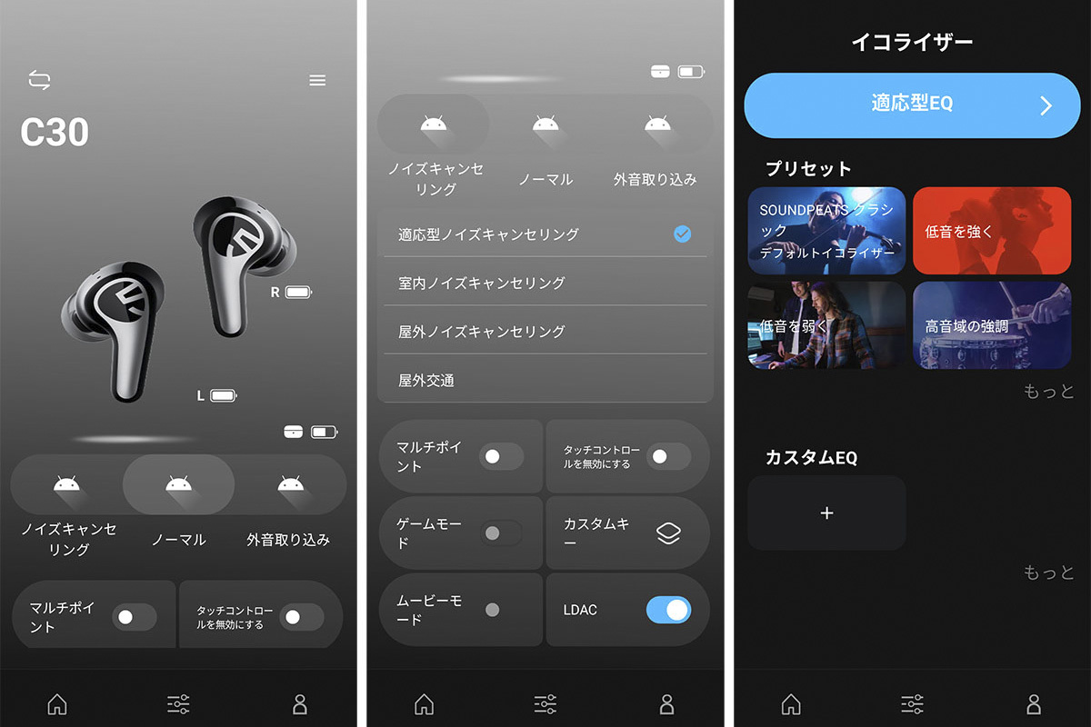そんな同ブランドから新登場した「C30」は、税込の通常価格が4,980円とインパクトのあるプライスで、アクティブノイズキャンセリング機能(ANC)に加え、BluetoothコーデックのLDACにも対応する意欲作。