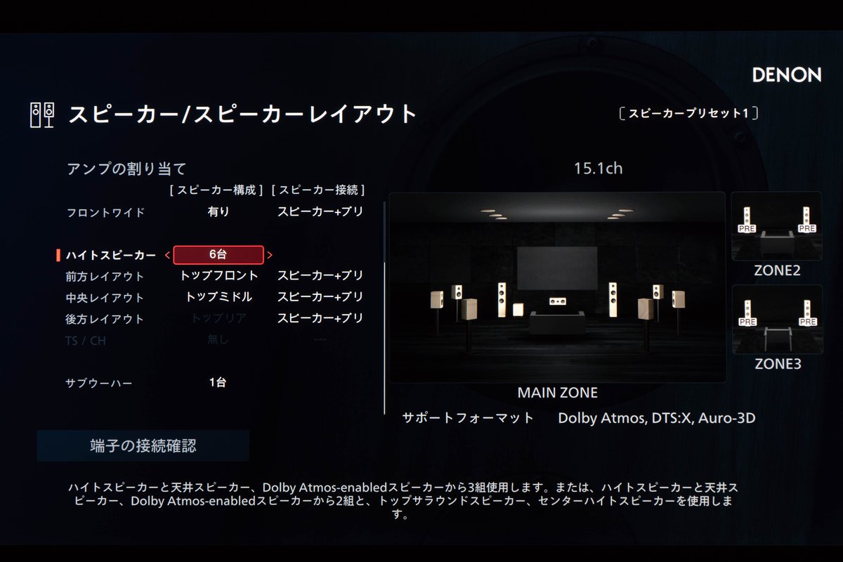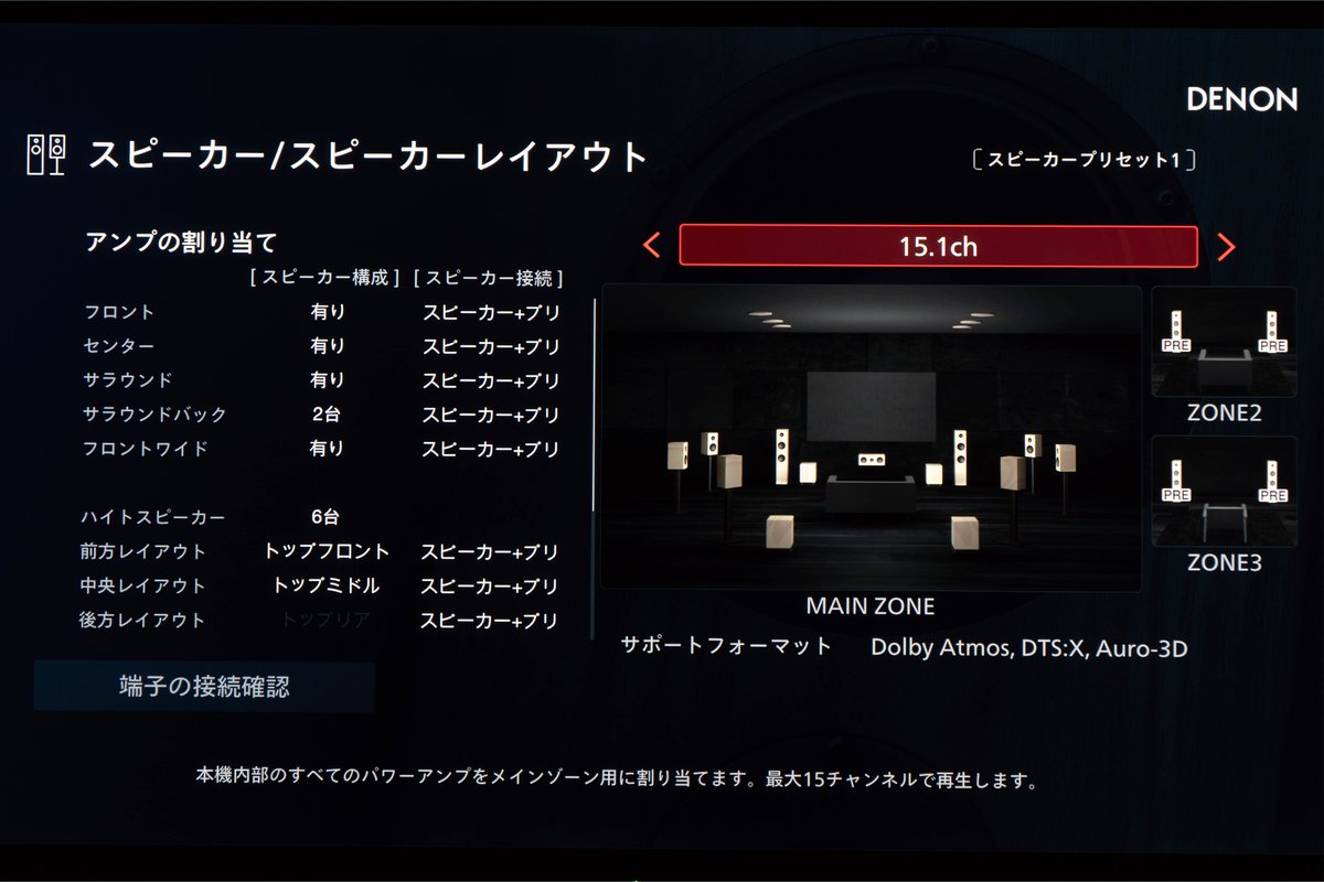家庭用Dolby Atmosのフルスペックである15chを実現した世界初の最上位AVアンプ