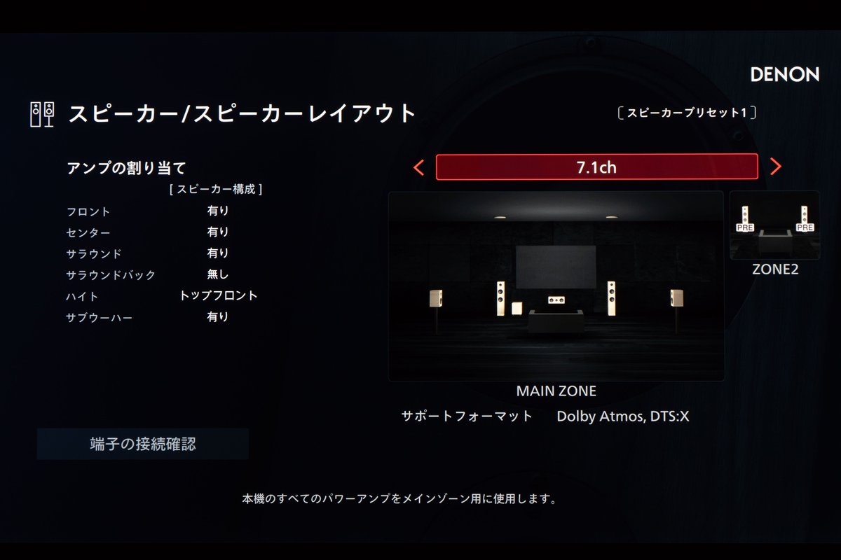 なお、本機から「チャンネル・レベル・モニタリング機能」が初採用された。全7chの音声信号レベルが、リアルタイムでテレビやプロジェクターからの映像に表示できる。一種のエンターテインメント機能だが、“The Hometheater” を標榜する本機として、少しでも多くのオーディオビジュアルファンに、本機を入り口としてホームシアター沼にハマってほしいというデノンの願いが感じられる。