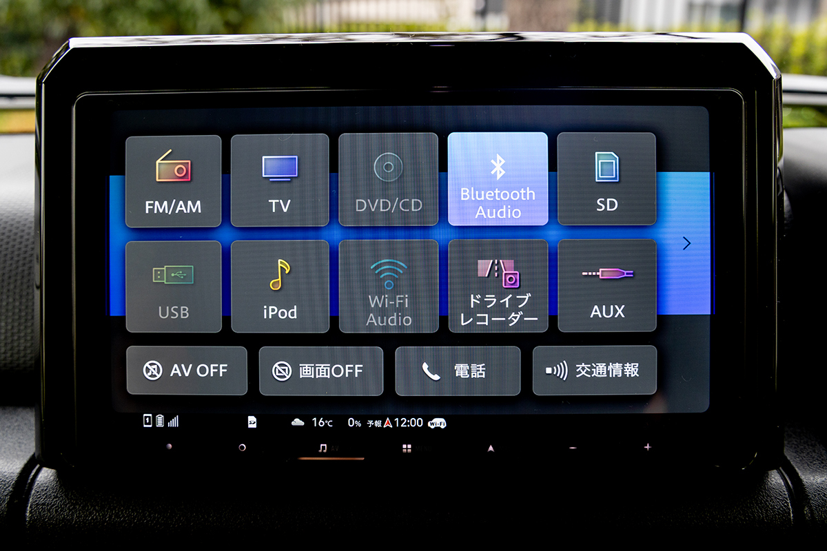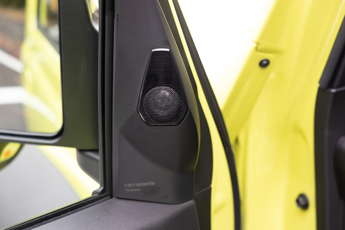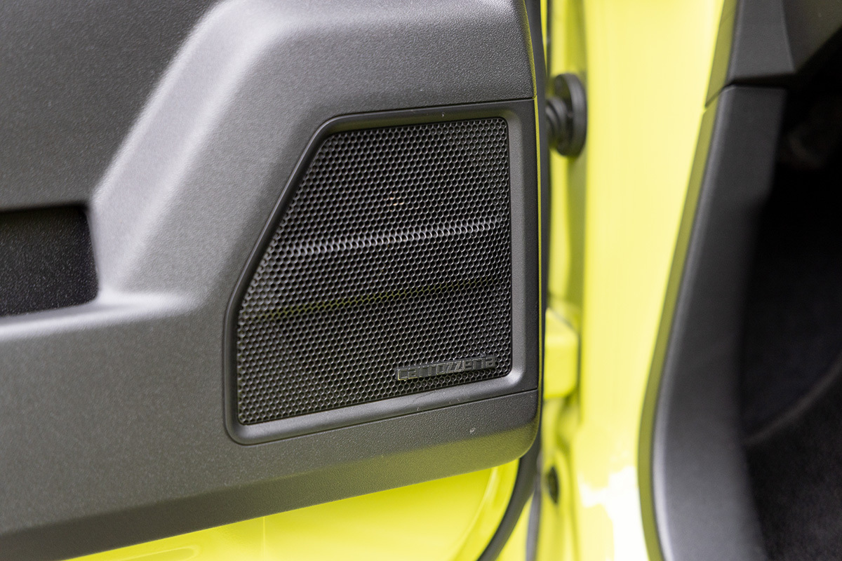 国内外で人気を集めるスズキの本格オフローダー「ジムニー」。その車内は質実剛健そのもので、エンターテインメントの面に目を向けると、標準状態のジムニー・シエラのオーディオシステムは、フロントドアに設けた13cmと、スズキ純正カーナビゲーションシステムが装備される。