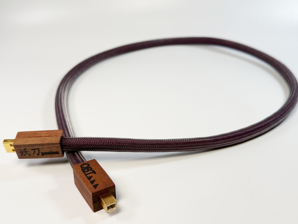そんなタニグチさんが開発したUSBケーブル「妖刀USB」がオーディオ銘機賞2026を受賞した。0.35mmの高純度銀線を1極当たり4本束ねた導体構成。シールドには真鍮の編組線を採用、日本では入手できない貴重な素材という。