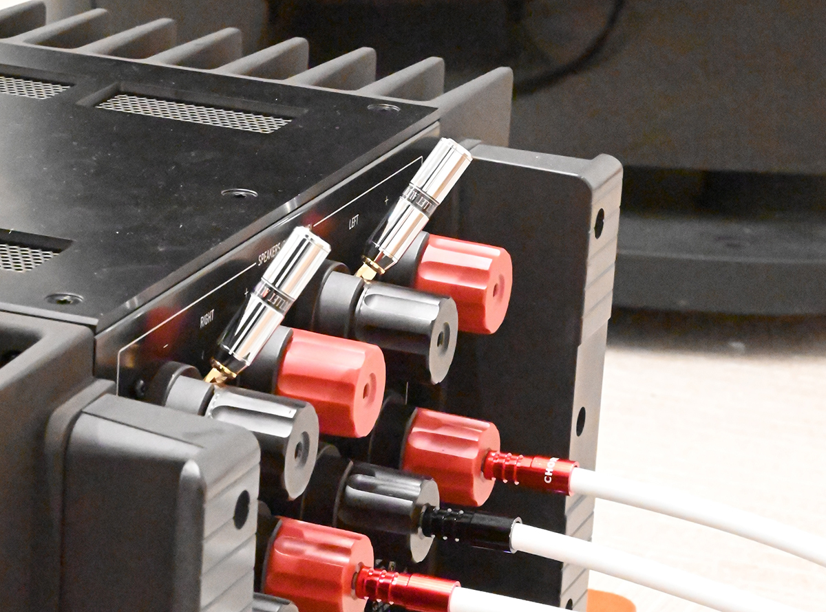 SILVER BULLET SPは、スピーカーのみならずアンプやプレーヤーにも使える。勢いに乗ってパワーアンプのスピーカー端子の空き端子へも装着してみたら、虚飾を剥ぎ取った超ハイスピードなサウンドは大いに買えるのだが、やや効果過剰な印象。