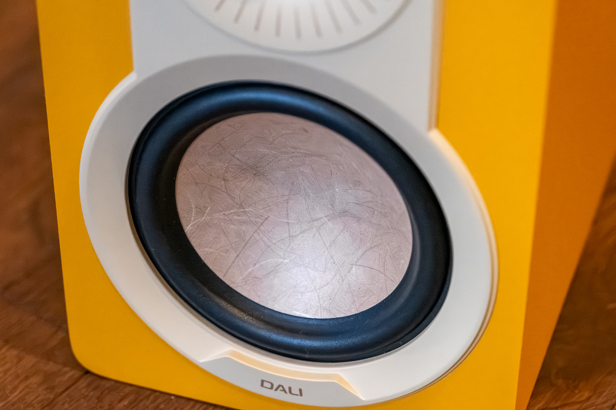 ウーファー振動板には、当然のことながら、ペーパーにウッドファイバーを混ぜた、DALI伝統のウッドファイバーコーンを使用。形状は、パラボラアンテナのような浅いお椀状の115mm径スフェリカルコーンが採用されている。