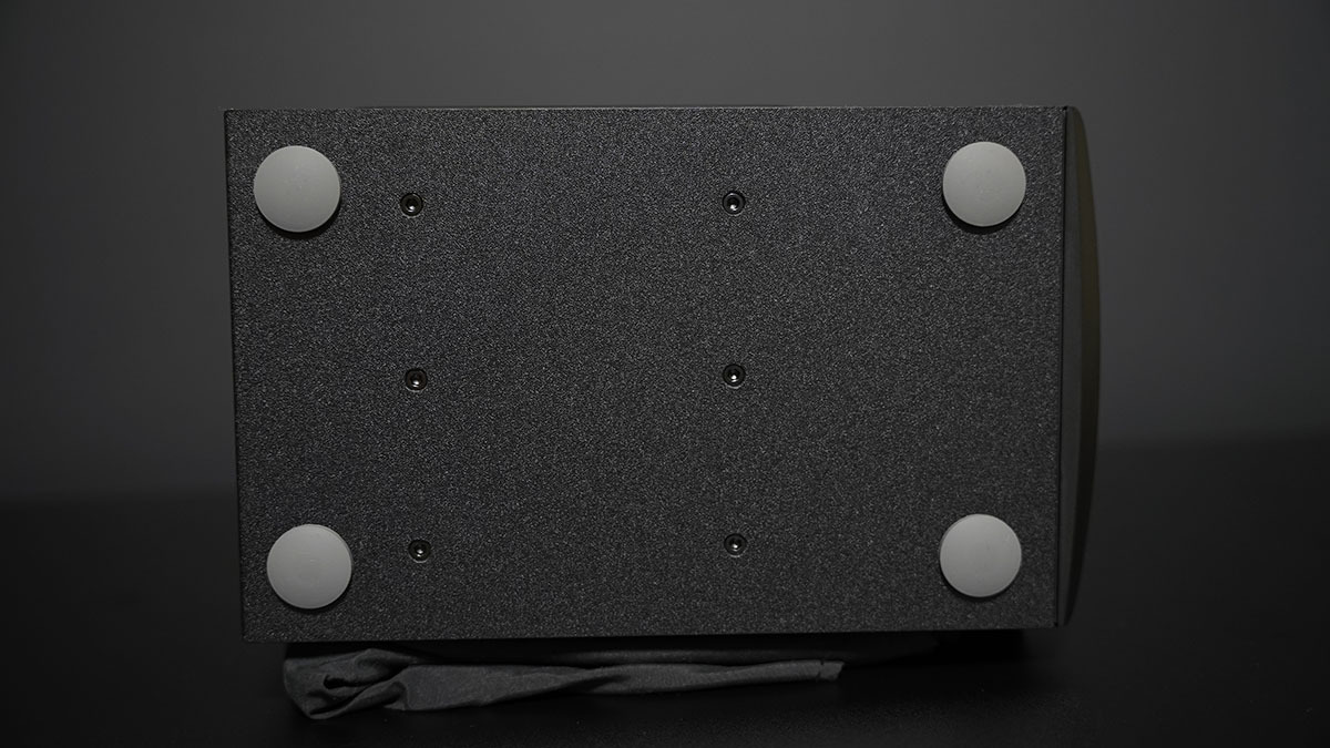 底面にはラバーフットが標準装備となっており、接地面からの悪影響やがたつきを低減できる。素直な形状のため、別途インシュレーター等も使いやすい。