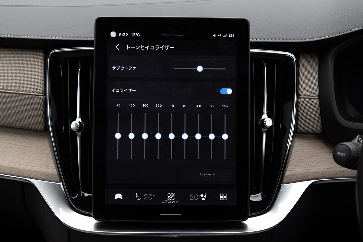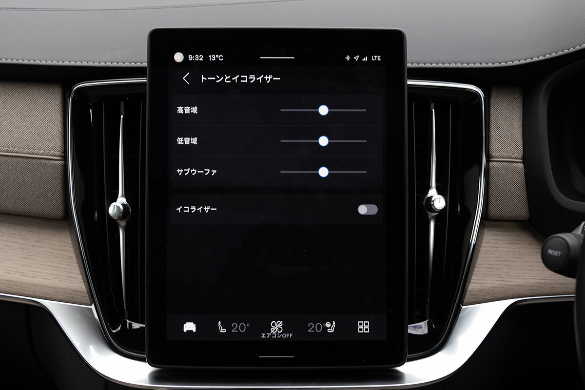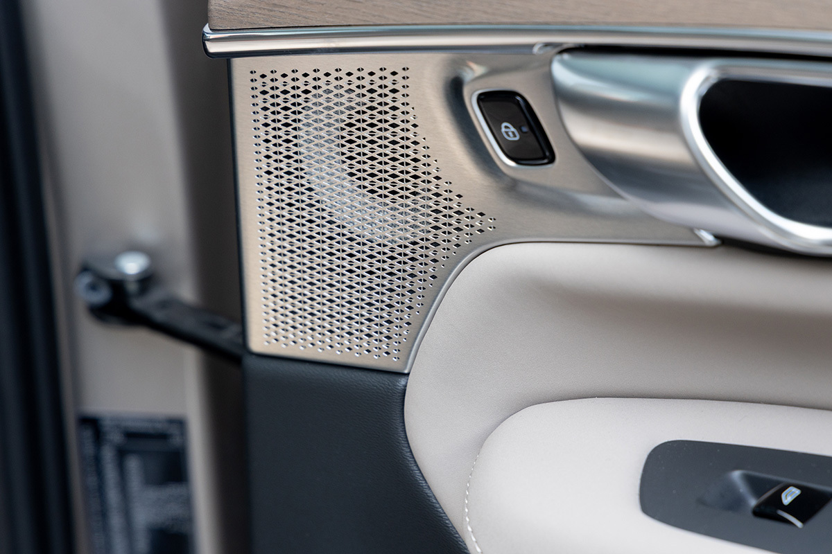 フロントドア、リアドアともに3ウェイ構成。どちらも貼り合わせガラスが採用され、車内はかなり静粛だ。さらにXC90 Ultra T8 AWDはPHEV(プラグインハイブリッド)であるため、アイドリング状態にしなくても音楽が愉しめる。もちろんバッテリー残量によっては、エンジンを駆動せずとも走行可能だ。