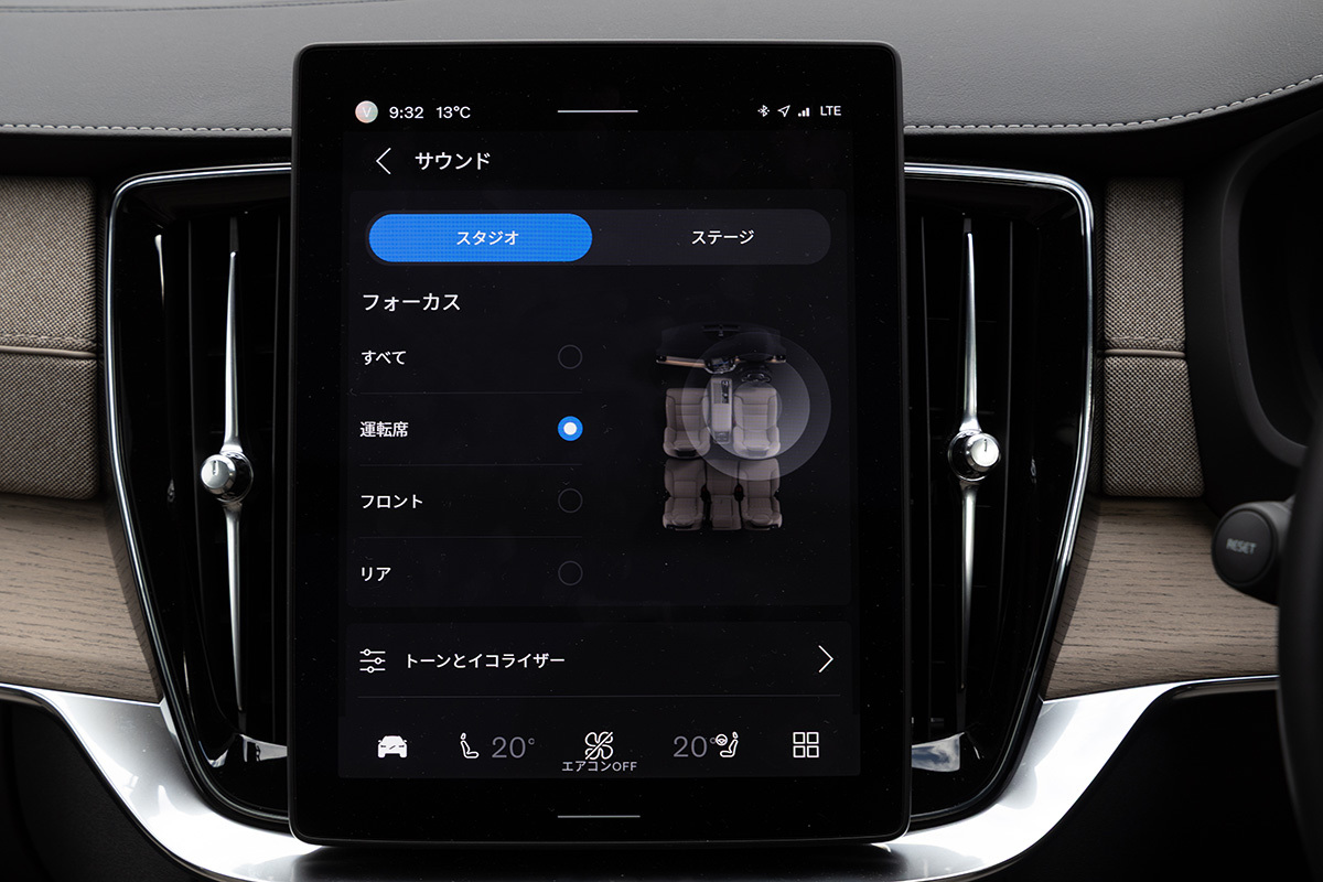 驚いたのは2列目(後席)での音の良さだ。定位感もよさもさることながら、リアドアも3ウェイにしたことによるバランスの良さが活きている。XC90 Ultra T8 AWDは3列シートSUVなので、3列目も聴いた。さすがに狭いうえに、スピーカーが天井のミッドレンジのみであること、そしてサブウーファーに近いことから、高域が足りない印象を受けたものの、音場はしっかりと表現していたことに感心した。