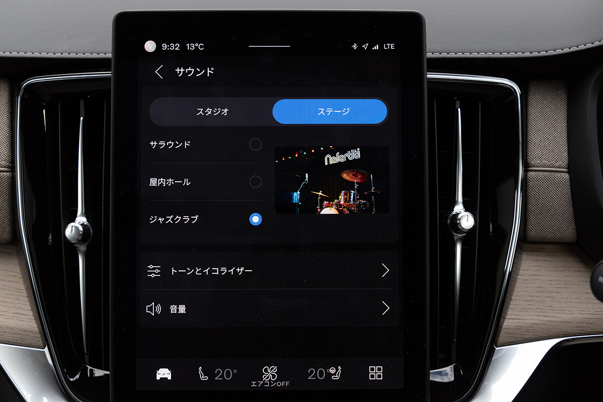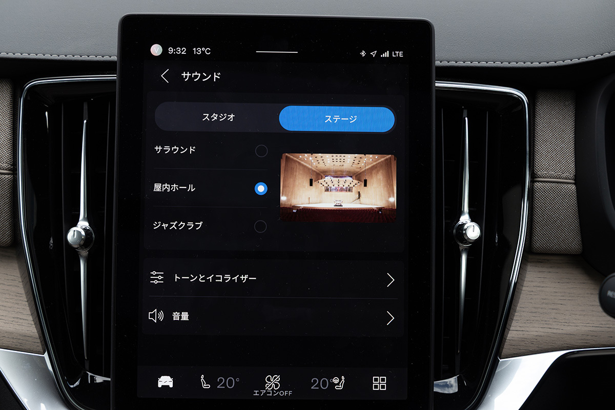サウンドモードはスタジオのほか、サラウンド、屋内ホール、ジャズクラブを用意。サウンドプロセッシングにはハーマン・インターナショナルの車両向け音響技術であるQuantumLogic SurroundやVehicle Noise Compensation Technologyが用いられているとのこと。