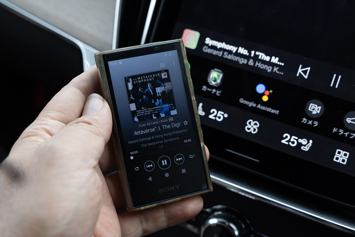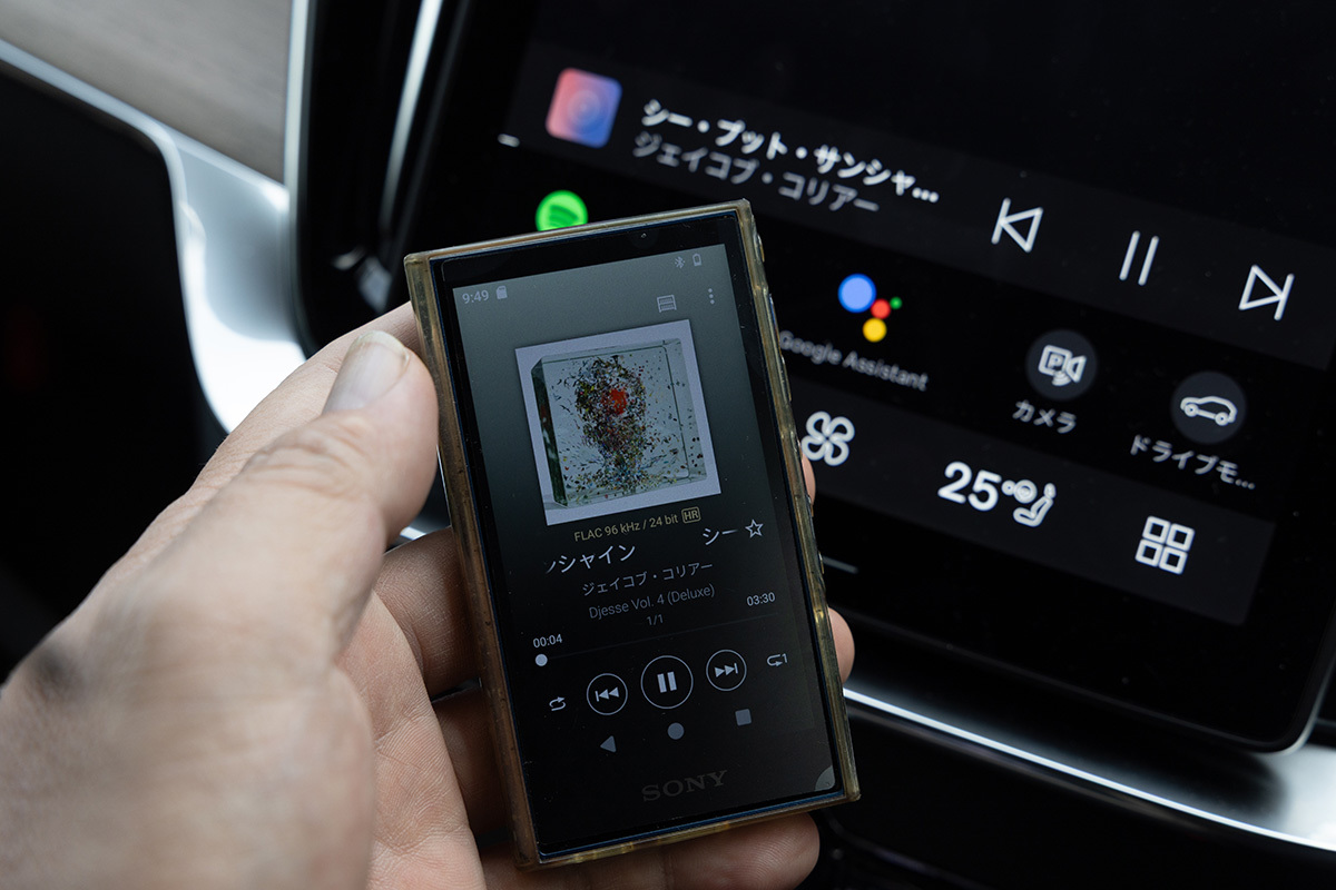 ハイレゾ音源を入れたUSBメモリーを車両と接続したが認識しなかったため、試聴はソニーのDAPであるNW-A300シリーズを用い、XC90 Ultra T8 AWDとBluetooth接続で行った。